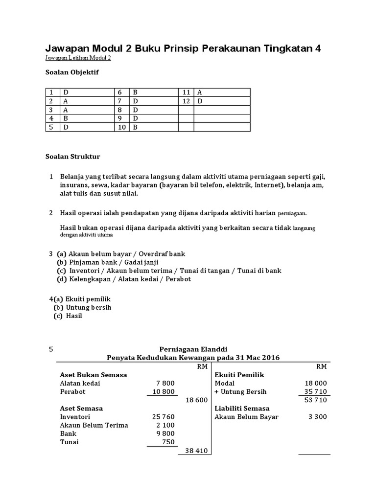 Jawapan Prinsip Perakaunan Tingkatan 4